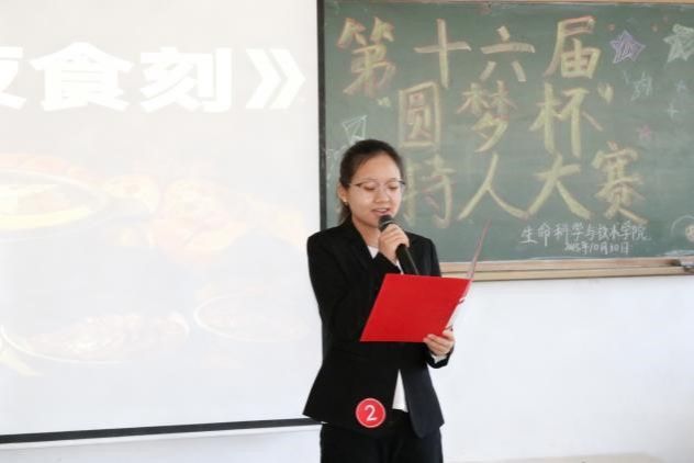 为丰富大学生的课余文化生活,展现自我风采,生命科学与技术学院于10月30日下午在逸夫楼201室成功举办第十六届“圆梦杯”主持人大赛。校团委刘佳敏、学团办公室主任张荟和辅导员董雅群担任本次大赛评委。
