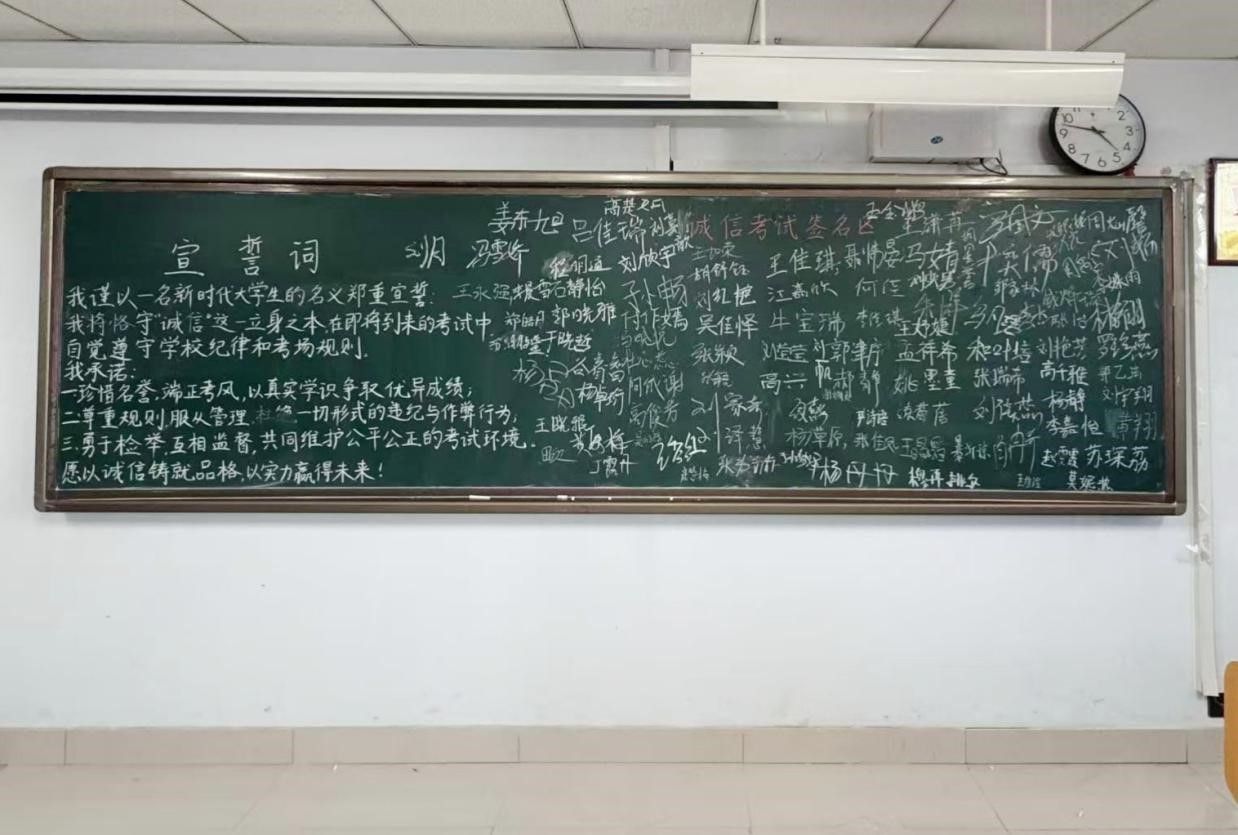 宣誓环节全体同学起立跟随领誓人进行诚信宣誓,誓言铿锵有力,将纪律要求内化为自我约束。随后,同学们在诚信考试签名区执笔留名,以签名践行承诺,彰显求学品德。