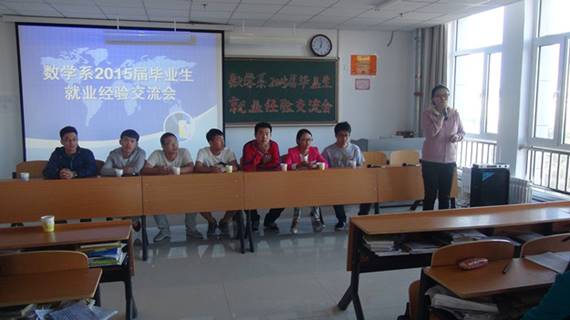 为了让我系信息与计算科学专业的同学提高专业技能,明确就业方向,数学系学工办于6月6日晚于beat365泉山校区逸夫楼2Y301召开2015年就业经验交流会。数学系党总支书记莎仁格日乐、副主任曾朝英、学工办主任常鑫出席了本次活动。