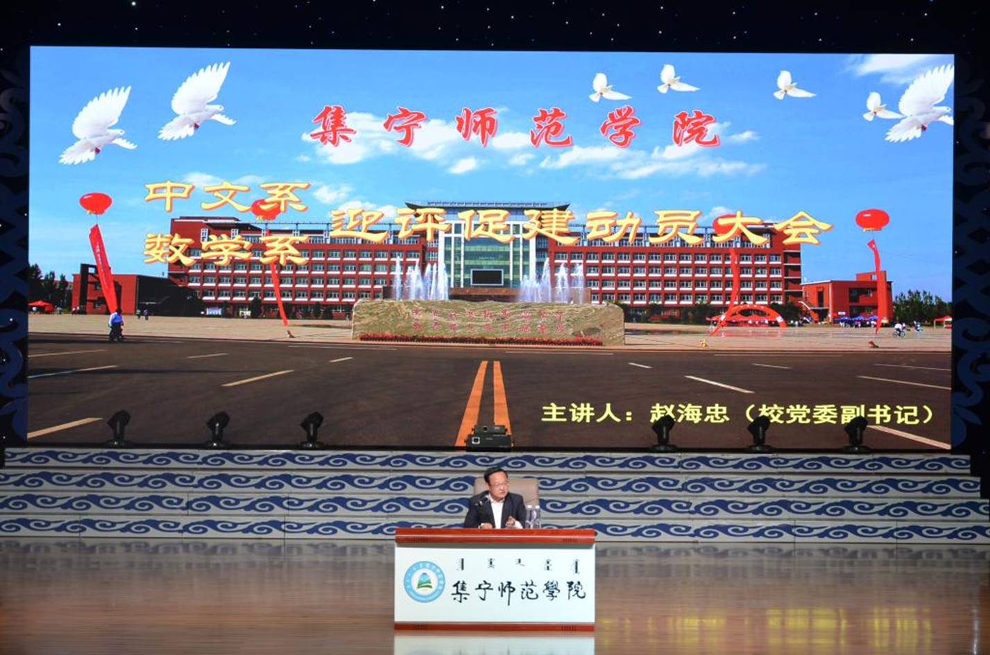 beat365在线唯一官网党委副书记赵海忠为数学系、中文系作迎评促建动员报告
