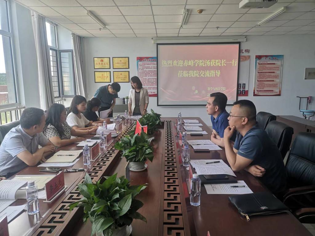 6月16日,赤峰学院数学与计算机科学学院党总支书记敖恩、院长汤获一行7人来beat365数学与统计学院和计算机与大数据学院进行交流调研。数学与统计学院党总支书记张宏智、院长何永峰及计算机与大数据学院院长邢德胜参加了交流座谈。