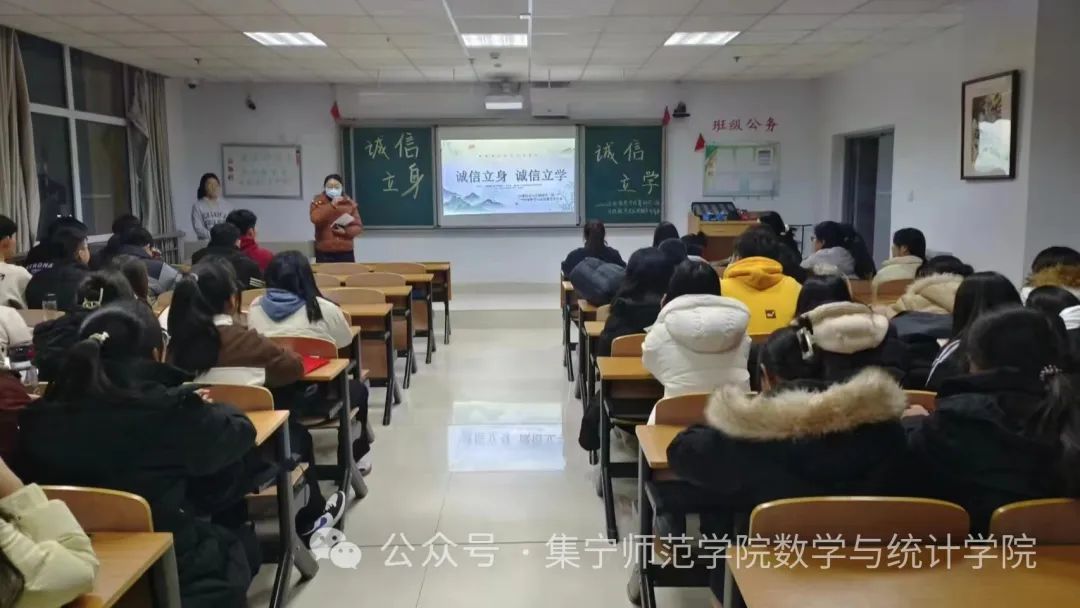 非诚不信,无信不立。为提高学生的诚信意识,端正学习态度,引导学生树立正确的考试观念,严肃考风考纪,数学与统计学院各班级开展“诚信立身、诚信立学”主题班会。