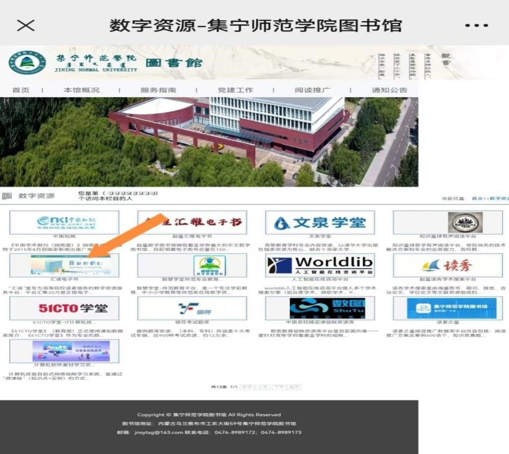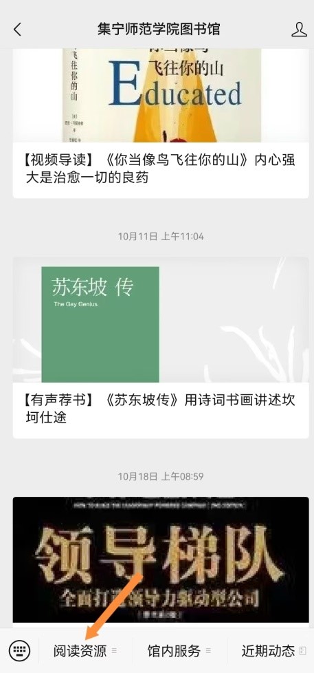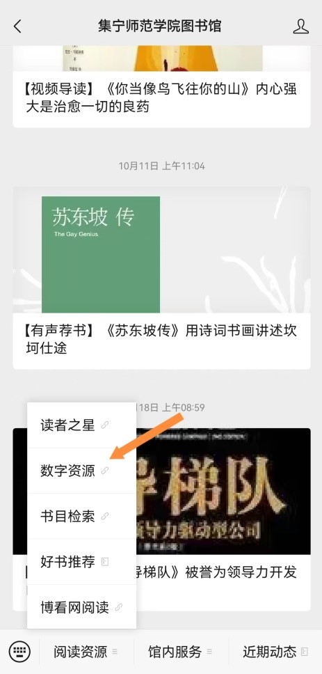 2.进入beat365在线唯一官网图书馆公众号后,点击左下方阅读资源→数字资源→汇读电子书。