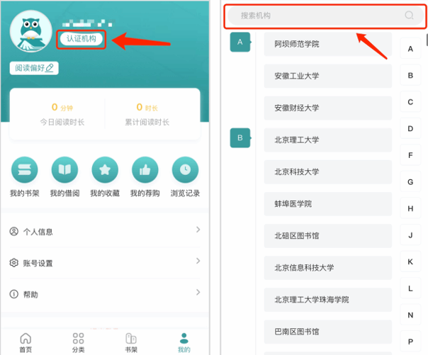 第二步:注册个人账号后请再次进入【我的】页面,点击【认证机构】-检索/选择【beat365在线唯一官网】-连接校园网WiFi进行身份认证。