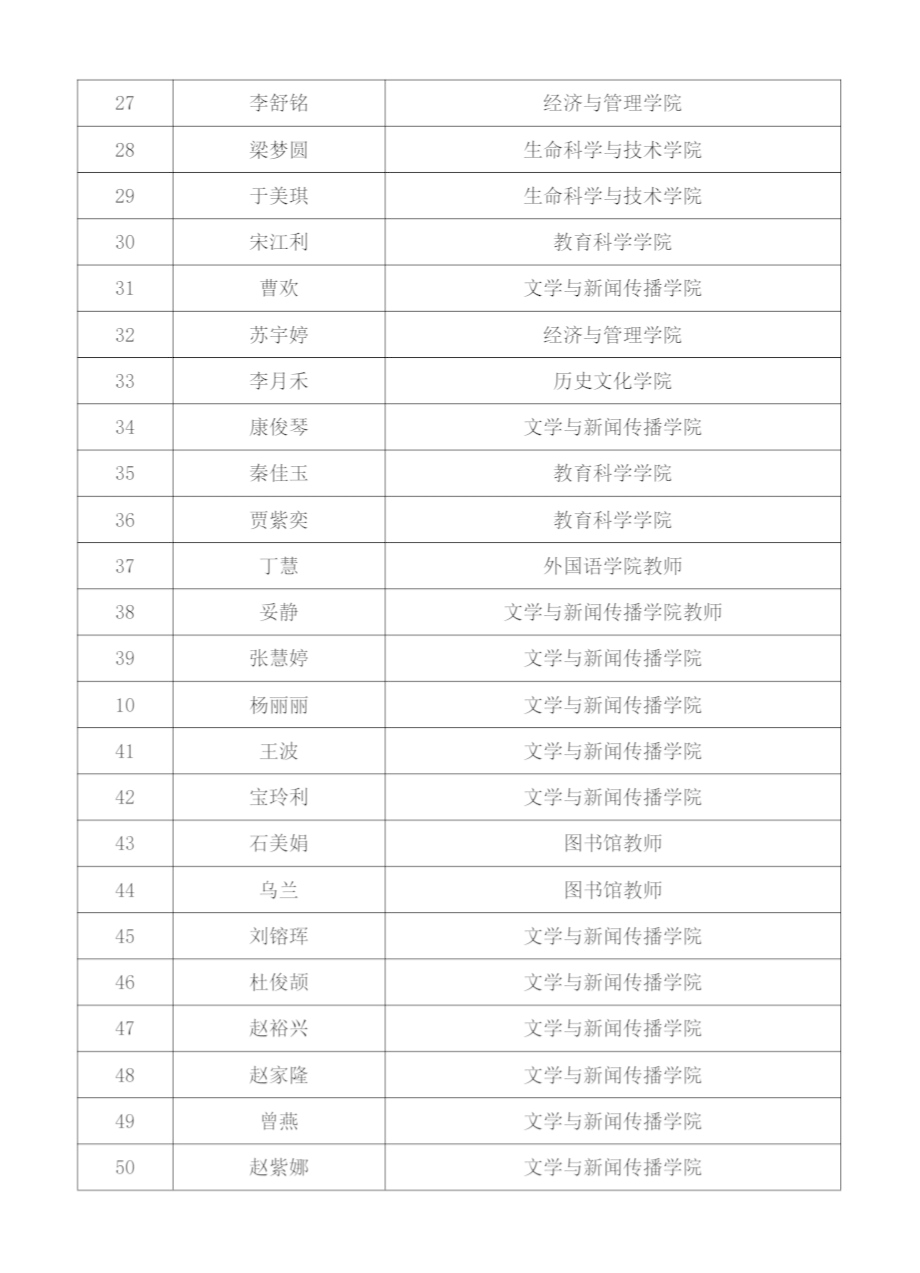 遴选出的50名“阅读之星”名单