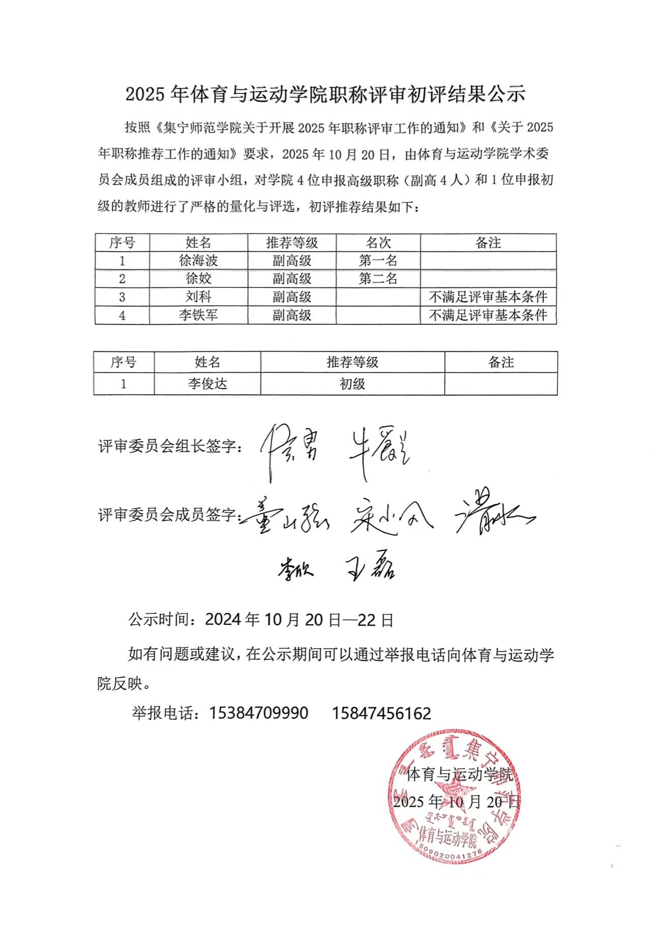 体育与运动学院“双师型”教师聘期考核结果 公示