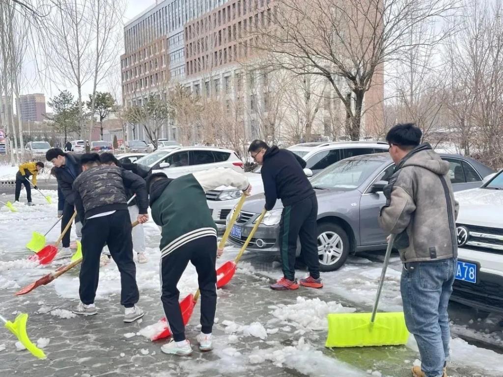体育与运动学院学生党支部全体师生党员在出力流汗中锻炼了劳动能力、美化了校园环境、消减了安全隐患、便利了师生日常生活,全体师生党员冲锋在前、奋勇争先,冰天雪地中涌现出热血沸腾的青春力量。