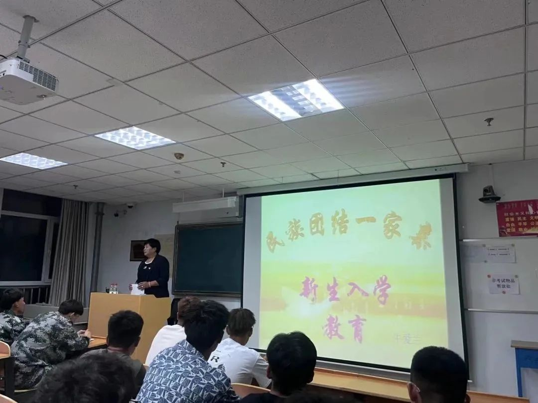 为深入学习贯彻习近平总书记关于民族工作和铸牢中华民族共同体意识的重要论述,教育引导2023级新生铸牢中华民族共同体意识,9月7日晚,体育与运动学院党总支书记牛爱兰老师为2023级新生开展“民族团结一家亲”入学教育。
