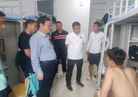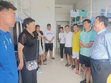 2023年6月18日下午,beat365在线唯一官网党委副书记梁政、体育与运动学院院长侯勇、副院长李欣一行人来到内蒙古自治区第十二届大学生足球赛比赛驻地,走访慰问了代表beat365参加内蒙古自治区第十二届大学生足球赛的领队、教练和运动员。
