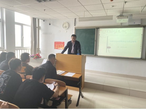 2021年5月19日15:00,体育与运动学院召开就业指导专题讲座。本次特邀校就业处刘东生老师为2021届毕业生作就业指导讲座。参加讲座的有学院党总支副书记王晓瑭、毕业班班主任刘宝华老师、薛宏伟老师和负责就业工作的陈晓倩老师及2021届全体毕业生。