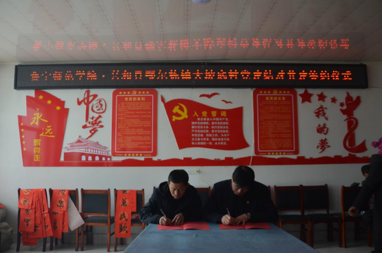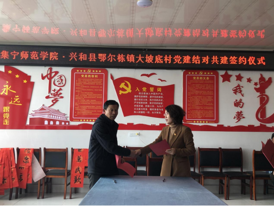 党委组织部统战部、党委宣传部、工会党支部书记与兴和县鄂尔栋镇大坡底村党支部书记在大坡底村党群服务中心举办结对共建签约仪式,并分别与兴和县鄂尔栋镇大坡底村党支部签订结对共建协议。