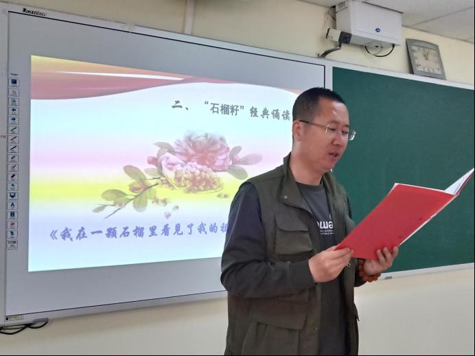 本次活动分为“石榴籽”小课堂和“石榴籽”经典诵读两个环节。“石榴籽”小讲堂环节中,石秀峰、庞凤琴、许俊芳先后领学了《中国共产党统一战线工作条例》相关内容。“石榴籽”经典诵读环节中,韩丽国朗诵《我在一颗石榴里看见了我的祖国》,庞凤琴朗诵《月光下的中国》,陈镜天朗诵《我骄傲,我是中国人》,饱含深情的诵读将对祖国和党的满腔热爱表达地淋漓尽致。