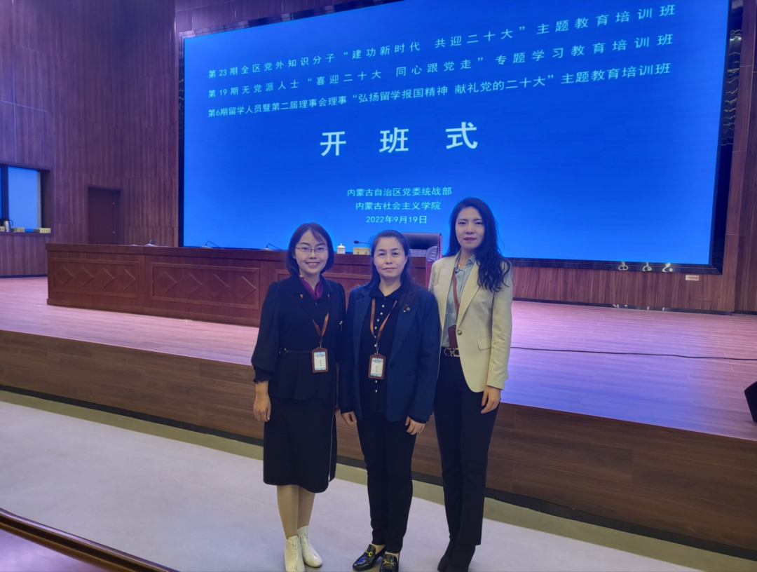 9月19日至24日,由内蒙古自治区党委统战部组织举办的第23期全区党外知识分子“建功新时代 共迎二十大”主题教育培训班、第19期无党派人士“喜迎二十大同心跟党走”专题学习教育培训班、第6期留学人员暨第二届理事会理事“弘扬留学报国精神 献礼党的二十大”主题教育培训班在内蒙古社会主义学院举办。自治区党委统战部副部长、台办主任赵宏出席开班式并讲话,内蒙古社会主义学院党组成员、副院长赵景华作动员讲话,开班仪式由自治区党委统战部五处处长高翔主持。