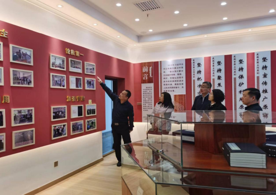 会后,与会人员参观少数民族古籍展阅室,翻阅整理出版的民族古籍和文献资料等典藏书籍,观看民族古籍工作视频资料,详细了解民族古籍电子档案整理归档工作。