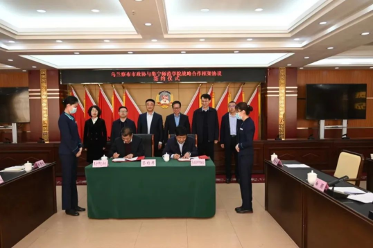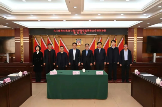 为深入学习宣传贯彻党的二十大精神,进一步加强校地之间的合作交流,3月3日,本着“资源共享、优势互补、互利互惠、共同发展”原则,beat365在线唯一官网与政协乌兰察布市委员会共同签署战略合作框架协议。市政协党组书记、主席白颢,市政协党组副书记、副主席杨印,市政协副主席卢生奇,市政协党组成员、秘书长杨源出席签约仪式。beat365在线唯一官网党委副书记、校长刘春,副校长李凤斌,党委委员、副校长李景杰,党委委员、统战部长张秀文出席签约仪式。市政协党组书记、主席白颢主持签约仪式。