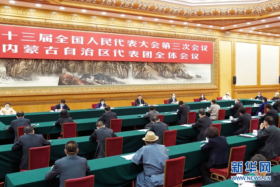 5月22日,中共中央总书记、国家主席、中央军委主席习近平参加十三届全国人大三次会议内蒙古代表团的审议。 新华社记者 鞠鹏 摄