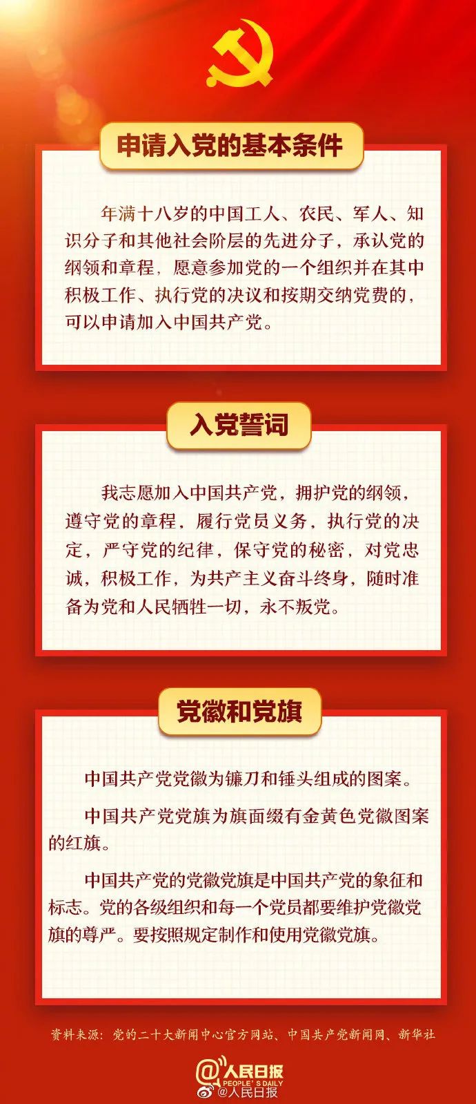 中国共产党第二十次全国代表大会将于16日上午开幕。中国共产党人的初心和使命是什么?“两个确立”“四个意识”“四个自信”“两个维护”,这些是指什么?身为党员的你,入党誓词还记得吗?一组知识帖,转存,学习!