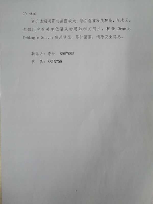 关于Oracle WebLogic存在多个安全漏洞的紧急通报