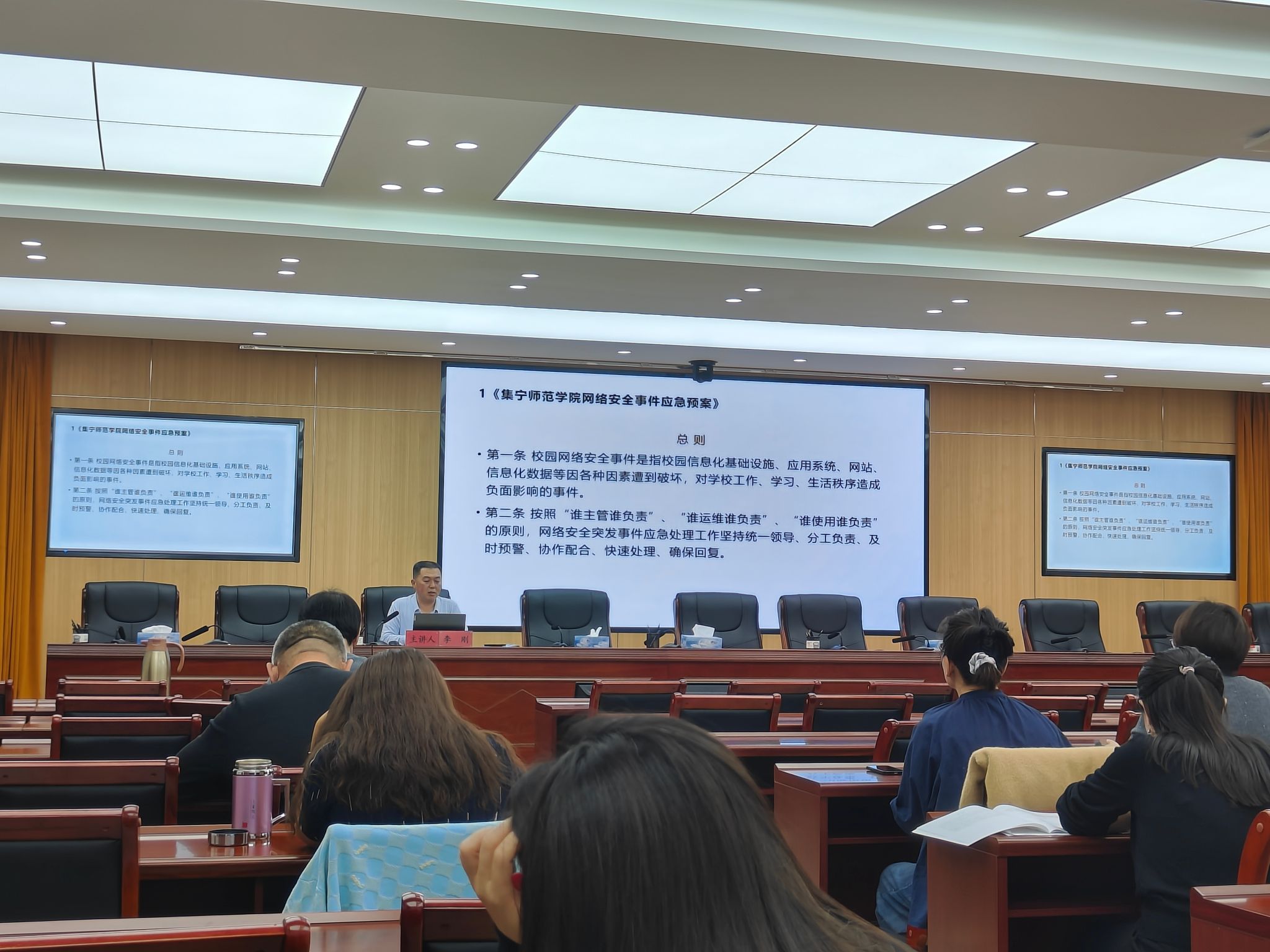 会上,网络中心负责人李刚深入浅出地剖析了校园网络当前的架构、覆盖范围、运行效能等基本情况,让众人对校园网络“家底”心中有数。详尽透彻地解读《beat365在线唯一官网网络安全管理办法》,从日常运维规范、信息发布审核到数据安全保护等关键要点均一一阐释;同时,针对《beat365在线唯一官网网络安全事件应急预案》,李刚着重说明了不同级别安全事件的界定、应急响应流程、各部门协同职责,旨在强化全体参会人员的网络安全防范意识,提升应对网络风险的实操能力,为校园网络安全筑牢坚实防护堤。