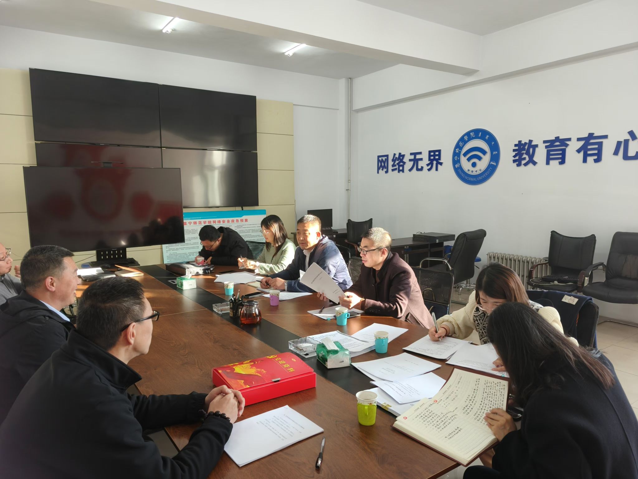 会上,网络中心党支部书记李刚就落实全面从严治党主体责任、党风廉政建设情况、意识形态工作、统战工作、围绕群众身边不正之风等几个方面的开展情况进行了汇报。检查组通过听取汇报、查阅资料、实地查看等方式,对网络中心的全面从严治党工作进行了全面细致的检查。