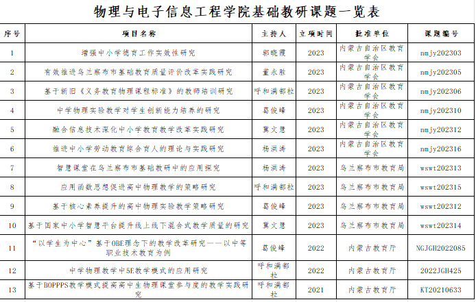 物理与电子信息工程学院基础教研课题一览表