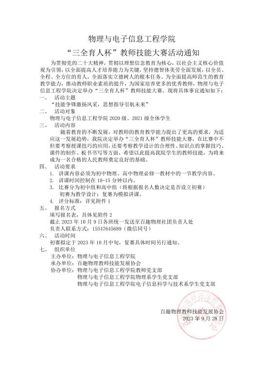 物理与电子信息工程学院“三全育人杯”教师技能大赛活动通知