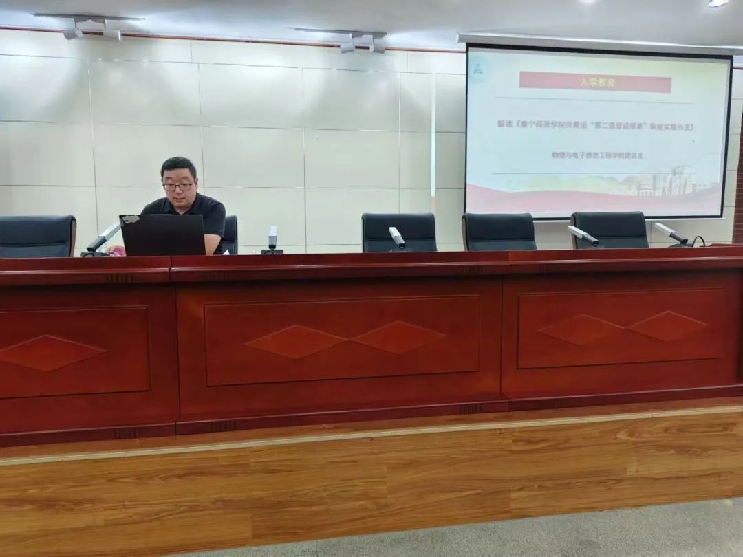 为了丰富大学生的学习生涯与生活,让学生在校期间提升个人价值和综合实力。物理与电子信息工程学院于2024年9月20日在图书馆报告厅开展新生入学教育,由学团办主任冀文慧老师主讲,全体24级新生参加此次讲座。同学们积极参与,更加深入了解大学生活的意义与方向。