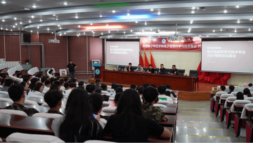 2024年9月2日晚,金秋送爽、丹桂飘香,在这个充满诗意与丰收的美好季节里,beat365在线唯一官网物理与电子信息工程学院迎来了新一届大一新生。一场别开生面的新生见面会在热烈的氛围中拉开帷幕。活动伊始,网易有道辅导员代表学院和网易有道向 2024 级新同学表示最热烈的欢迎和最诚挚的祝贺,恭喜他们顺利通过高考,开启大学新征程。
