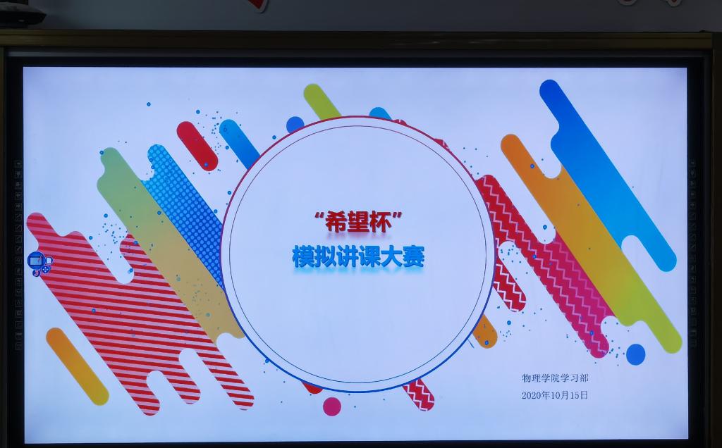 为丰富同学们的课余生活,提高学生的教学实践能力,加深学生对课堂教学的认识和理解,同时为内蒙古自治区第五届师范生教学技能大赛选拔优秀参赛选手,物理学院于10月15日下午3:30在逸夫楼405教室举办了“希望杯”模拟讲课大赛。