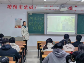 招聘会上,公司人力总监徐威为大家介绍了浙江运达风电公司的基本情况。此公司在内蒙古呼和浩特、包头均有分公司,弓美桃老师鼓励同学们积极参加招聘会,希望求职的同学们能抓住现场咨询机会积极投递简历。