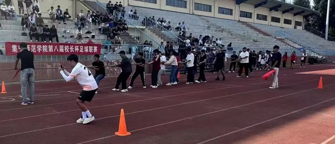 在6月25日我院与教育科学学院的拔河比赛中,我院以2:1的比分战胜了对手!