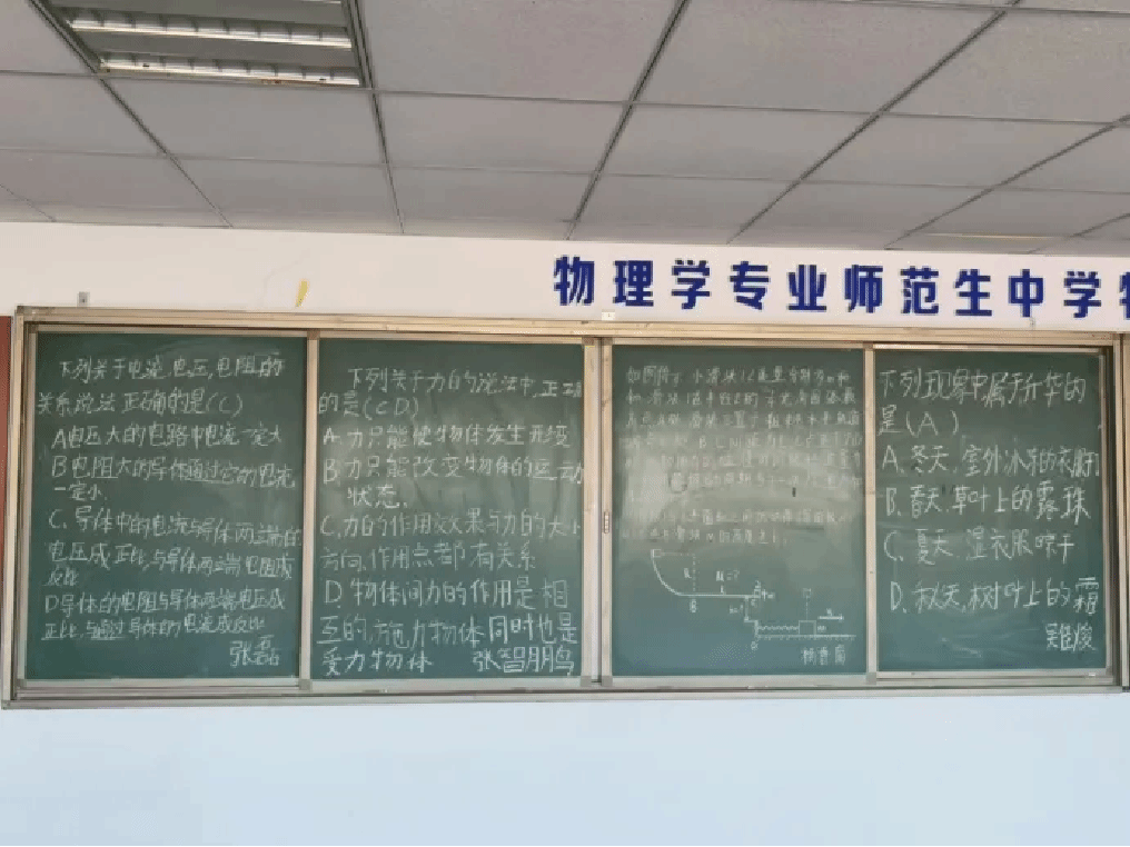 板报犹如一片彩霞,用绚丽的色彩和丰富的内容,装点着我们的视野。本次板报一些巧妙的设计和小插图,增加了板报的吸引力,使同学们在欣赏的过程中感受到物理的魅力。它不仅起到了传播知识的作用,还激发了同学们对物理的兴趣和探索精神。板报是一个灵感的舞台,演绎着精彩的故事。