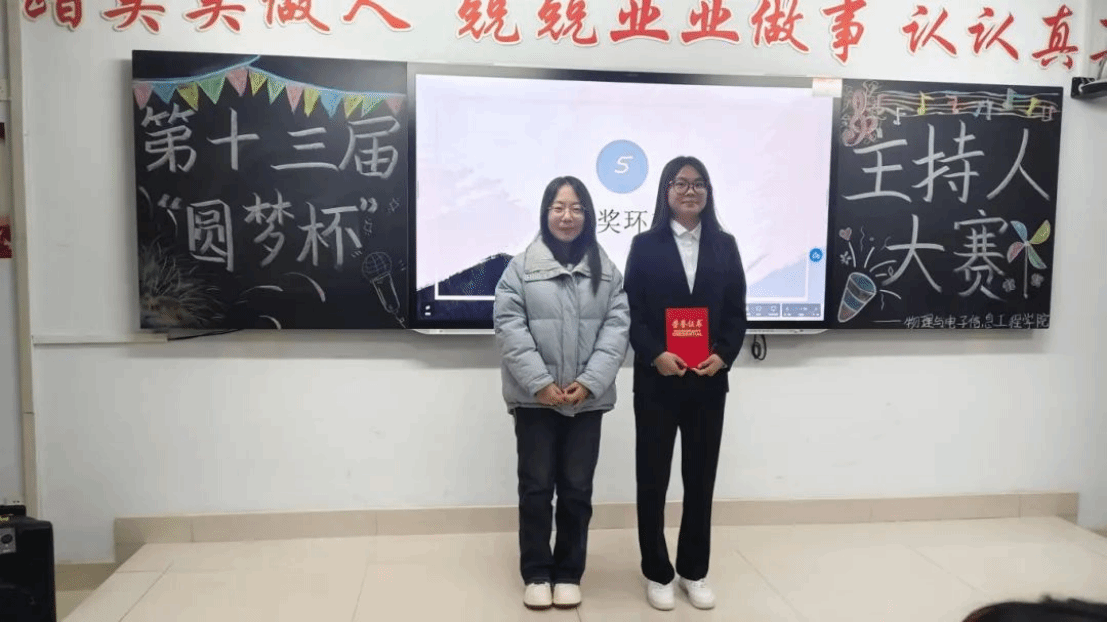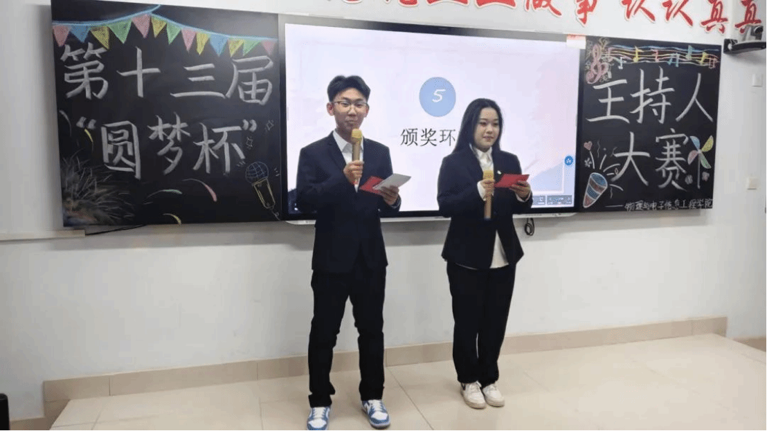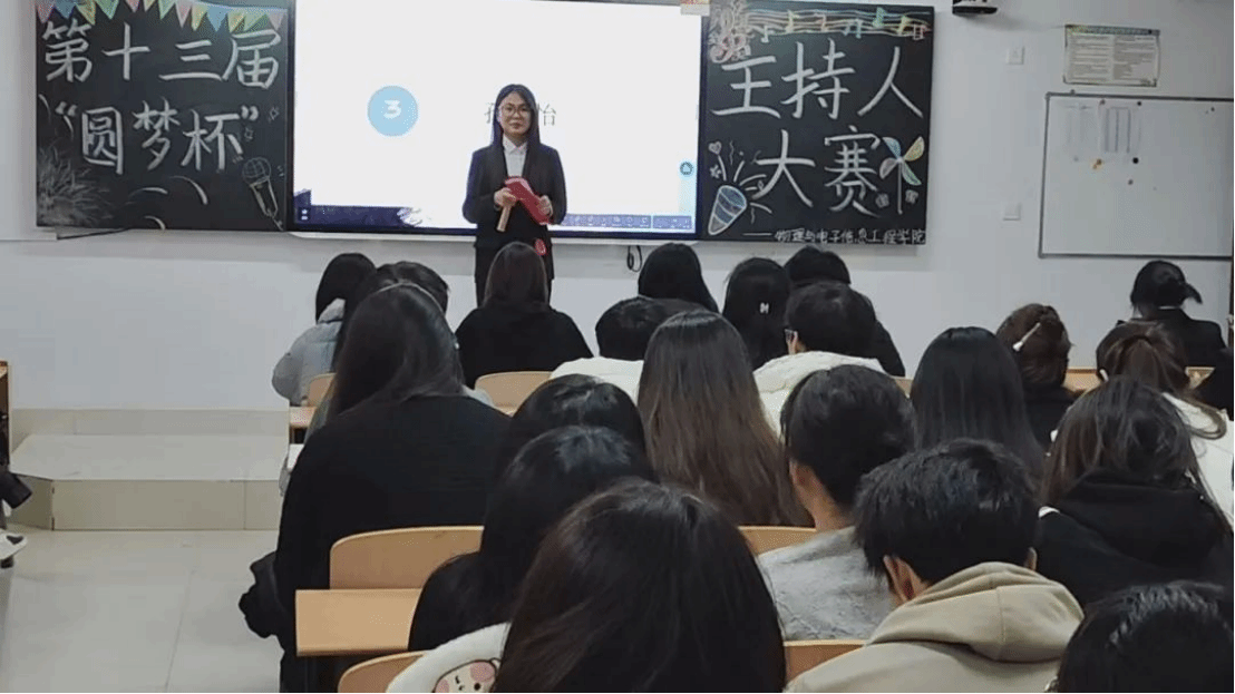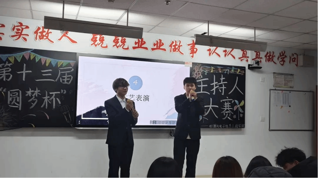 为提升同学们的语言表达能力、反应能力和舞台表现力。2024年12月8日,物理与电子信息工程学院在逸夫楼2Y403教室举办了一场主持人大赛。