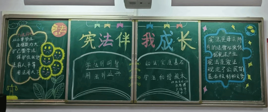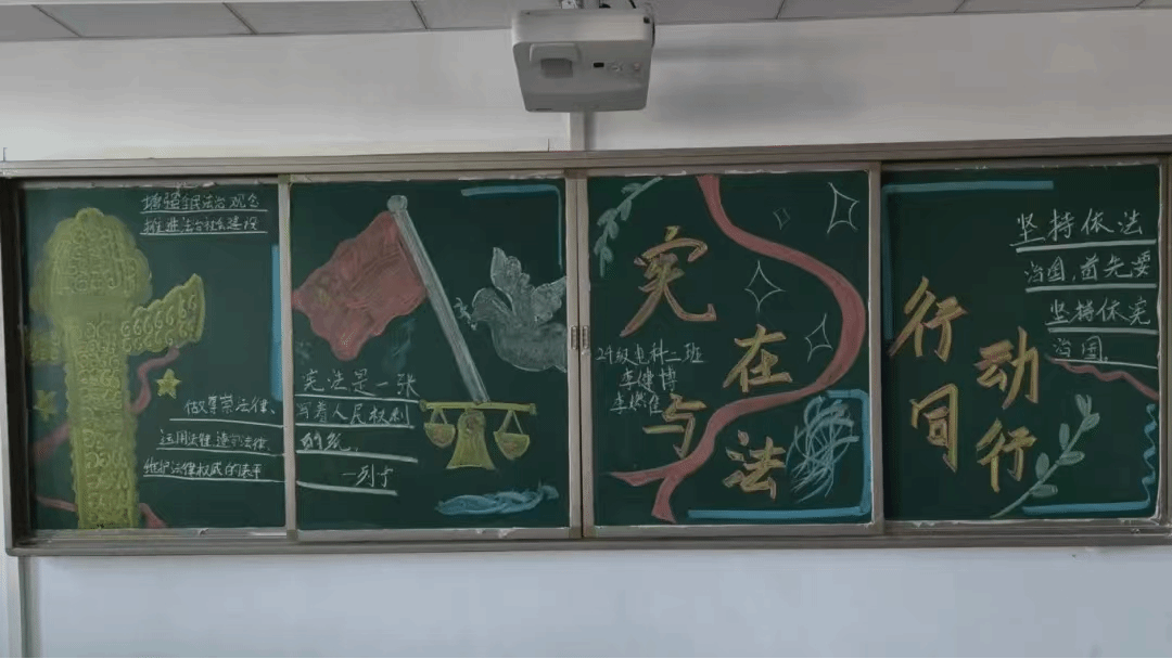 同学们结合相关宪法知识进行创作,一幅幅内容充实、构思新颖的黑板报体现出同学们对宪法的思考,展示出同学们自觉遵法、学法、守法、用法的良好风貌;一块块色彩斑斓,图文并茂的黑板报,凝聚着同学们对宪法的敬仰和理解。