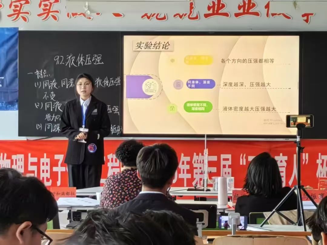 她围绕“液体压强”展开教学,精心设计教学流程,通过生动实验导入,迅速抓住学生目光,引导大家好奇探究液体压强奥秘。