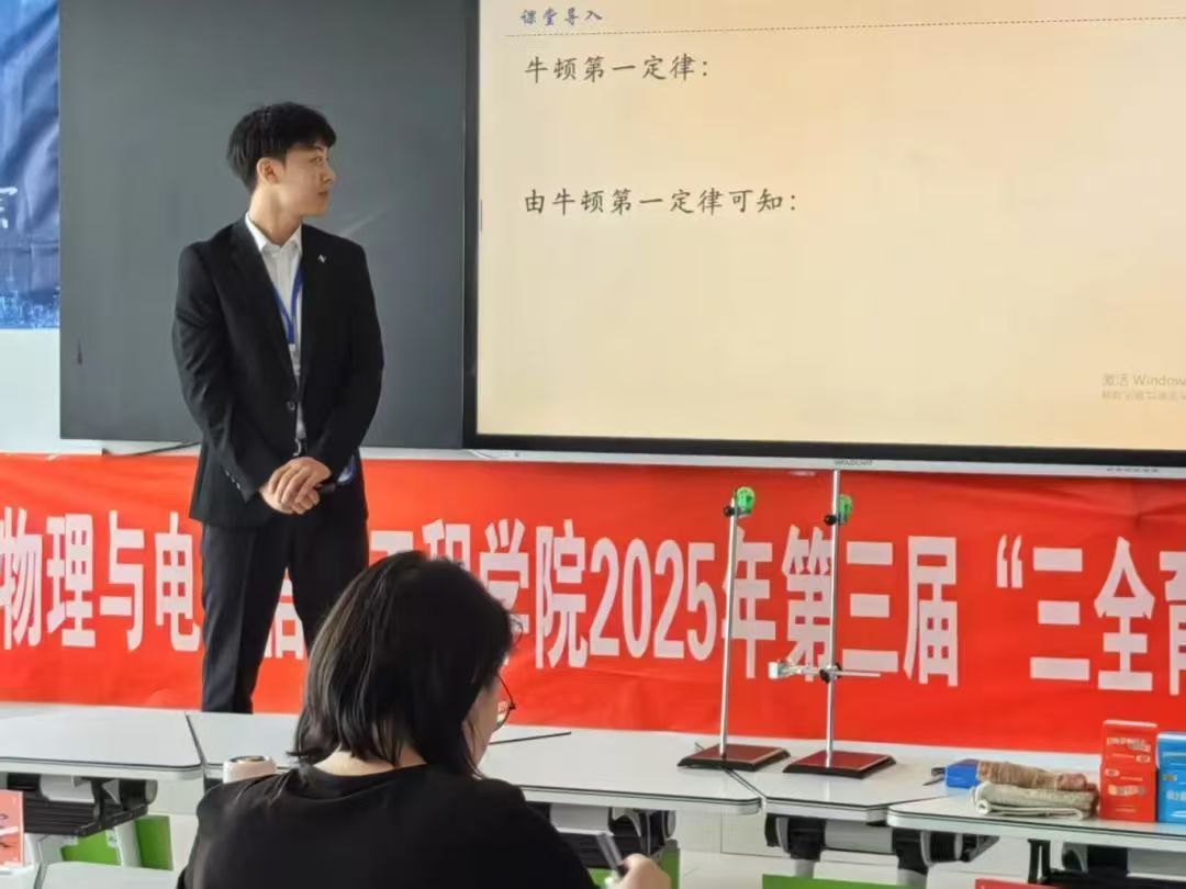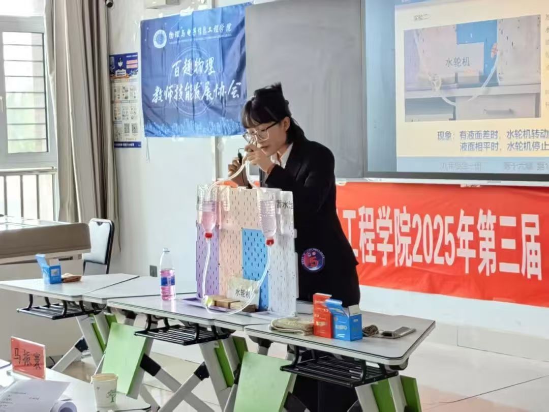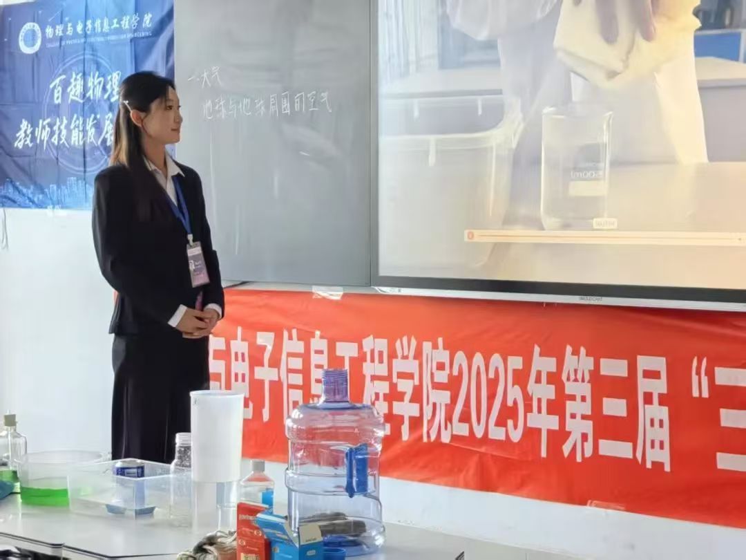 为深入贯彻落实党的二十大关于教育强国建设战略部署,积极响应教育部《师范生教师职业能力标准》要求,紧扣“落实立德树人、培育大国良师”核心目标,聚焦物理学科核心素养培育与新课标课堂教学改革。由beat365在线唯一官网物理与电子信息工程学院指导、主办,百趣物理教师技能发展协会承办,物理与电子信息工程学院团总支、学工办大力支持的2025年第三届“三全育人”杯师范生技能大赛于2025年5月29日16:00在逸夫楼2Y403成功举办。