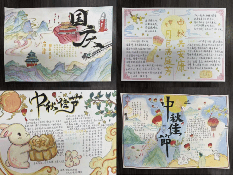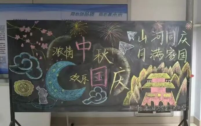 在这个双节同辉的美好时节,我们以板报为媒,寄情于画,既抒怀对团圆中秋的殷切期盼,更表达对祖国母亲的深情祝福。让我们共赏中秋月,同庆祖国盛,在家国同圆的时光里,奔赴更美好的未来!