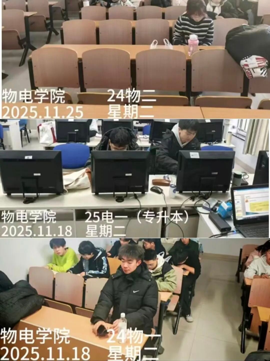 清晨7:50,校园里的晨读角已响起朗朗书声。学院“晨读计划”于每周一至周五准时开展,采用“纸质签到+部员抽查”的双重考勤机制,明确迟到10分钟以上视为缺勤,确保晨读活动扎实落地。 晨读过程中,学习部与纪检部成员轮流巡回检查,不仅维持着安静有序的学习环境,还会每日汇总考勤情况,月底进行统一统计。同学们迎着朝阳,或诵读专业知识,或梳理知识点框架,充分利用清晨黄金记忆时段巩固所学。该计划不仅帮助大家克服惰性、养成早睡早起的健康作息,更有效降低了早八迟到率,让“早起读书”成为物电学子的新风尚。 “无手机课堂”隔绝干扰、提升课堂效率,“晨读计划”锤炼习惯、夯实知识基础,两项活动相辅相成,不仅直接降低了课堂缺勤率与早八迟到率,更从根本上激发了同学们的学习内驱力,在全院营造出“比学赶超”的浓厚学习氛围。