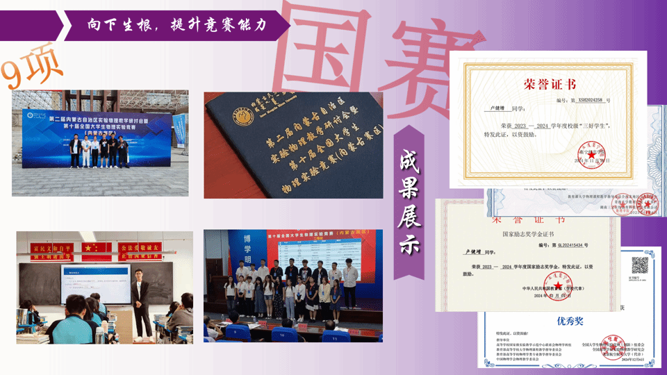 在学习上,卢健增始终以党的号召为指引,牢记“破除‘等靠要’思想,树立自立自强的观念”的要求,在物理师范专业的沃土上深耕不辍。入学以来,卢健增保持学业成绩与综合测评双第一的优异表现,扎实掌握经典物理、近代物理等专业核心知识,筑牢教学根基。
