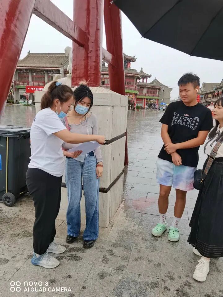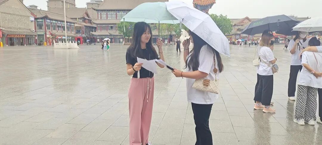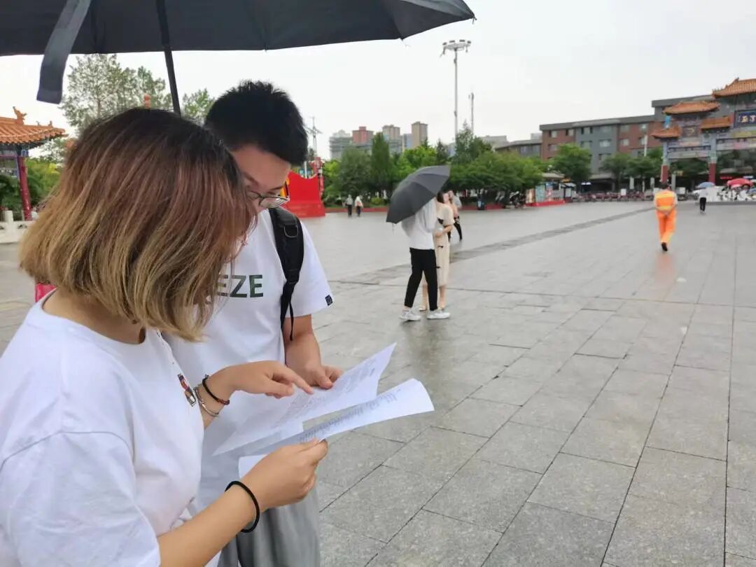 同学们走进大召,进入各自分配好的区域进行发放传单,宣传党史。