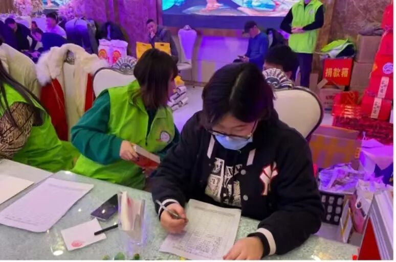 在内蒙古巴彦淖尔市临河区廣宇禧宴厅参加“圆梦微心愿,快乐迎新年”主题公益募捐年会活动。她说:在公益募捐年会活动中,我积极主动的负责募捐登记、布置会所等微小而不可或缺的部分,为公益事业贡献自己微薄的力量。