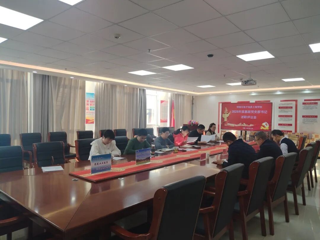 2025年12月19日上午,物理与电子信息工程学院党总支在逸夫楼2Y809召开2025年度基层党支部书记述职评议会。计算机与大数据学院闫闳、张培方、解二虎作为学校列席人员到会指导,党总支书记李贞主持会议,总支委员会7名委员及各支部书记参加。