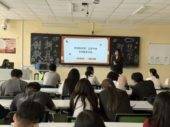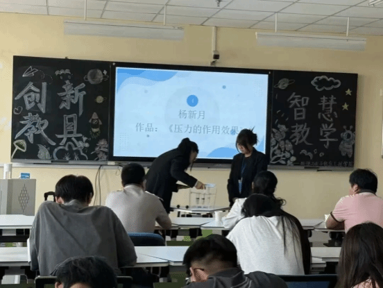 杨新月团队制作了《压力的作用效果》教具。主讲人杨新月借助简洁的教具,以严谨规范的实验操作、细致入微的操作记录展示他们的教具设计。她讲解时搭配生动形象的生活实例类比,将压力作用效果与压力大小、受力面积的关联剖析得透彻易懂,让原本抽象的物理知识褪去枯燥底色,呈现出充满趣味与活力的教学效果。