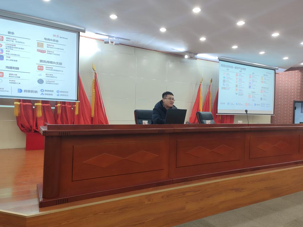 为深化产教融合,校企合作,拓宽学生学术视野,掌握最新信息动态,了解所在学科领域的前沿知识,2024年1月2日,由物理与电子信息工程学院主办的“AIGC专题”讲座在泉山校区图书馆报告厅举行。网易有道信息技术(北京)有限公司产教融合中心人工智能技术专家路东硕作了题为《大语言模型与AI绘画的魅力》的报告。报告由物理与电子信息工程学院郑晓霞老师主持,学院电子信息科学与技术专业300余师生聆听报告。