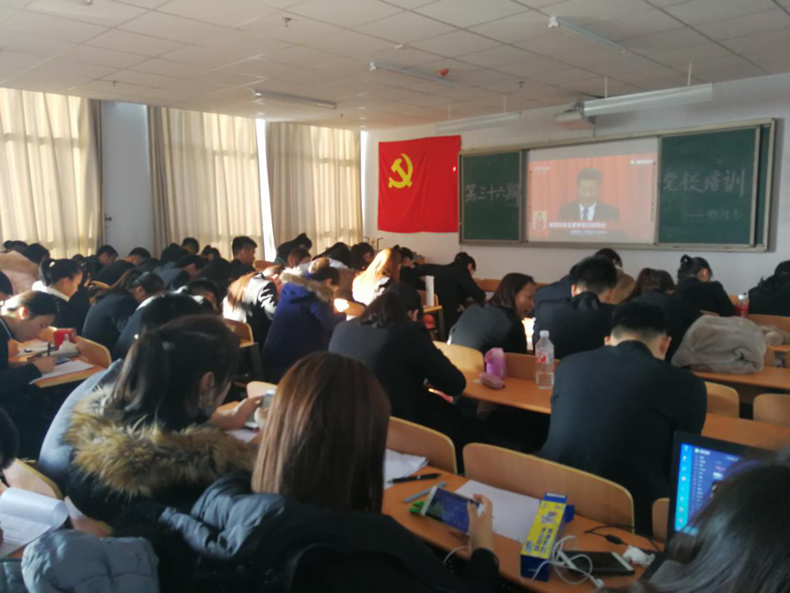 2017年11月22日19:30和11月23日16:30在逸夫楼301邀请思政部晓荣老师以“践行十九大精神,做忠心的爱国者”和“树立远大理想,做新时代有为青年”为主题讲授党课,晓荣老师以自己的见解为同学们深刻的解读了十九大,并对作为青年学生的我们如何做一名合格的爱国者做出了明确要求。2017年11月26日14:30在逸夫楼301聘请校组织部唐学明老师以“发展党员程序”为主题进行讲解,唐学明老师为同学们详细讲解了入党的流程,明确了入党的程序。另外我系在2017年11月26日上午8:00在逸夫楼509为同学们播放了《十九大报告》和《延续中华文脉》。11月26日19:00在逸夫楼507举行了第三十六期入党积极分子培训结业考试。