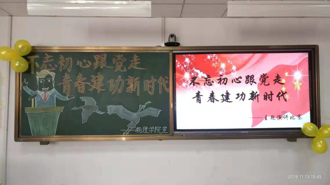 本次演讲比赛旨在弘扬爱党、爱国精神,全面学习贯彻党的十九大重要思想。比赛充分的调动了同学们的积极性,强化了同学们的爱国意识,也增强了当代大学生的社会责任感,树立了同学们共建和谐文明校园的良好观念。虽然物理学院“不忘初心跟党走,青春建功新时代”主题演讲比赛至此已经圆满落幕,但我们要在实现中华民族伟大复兴的中国梦的征程中不懈奋斗,在爱党、爱国的道路上坚定不移,做一个合格的新时代青年。