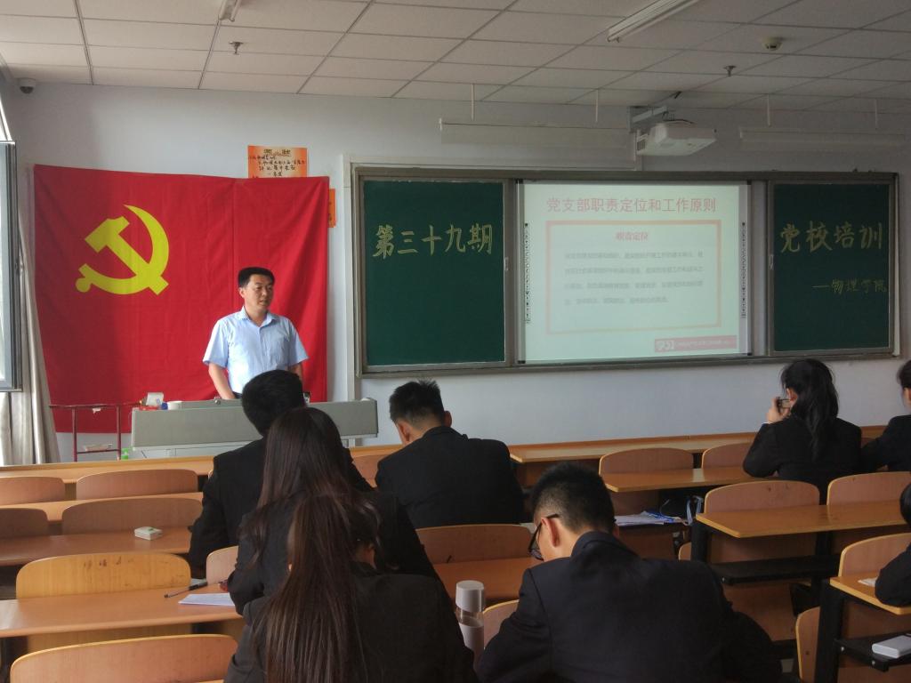 为落实学校党委组织部做好入党积极分子教育培训和党员发展工作的部署和要求,根据《中国共产党发展党员工作细则》要求,现对2019年6月份的发展的入党积极分子进行集中培训。物理学院党总支于2019年6月29日至2019年7月2日举办第三十九期入党积极分子培训班,使入党积极分子懂得党的基本知识,提高对党的认识,明确党员应具备的条件,树立正确的人生观和价值观,在团组织推优和党组织综合考察的基础上,共推荐23名学员参加本期培训班。