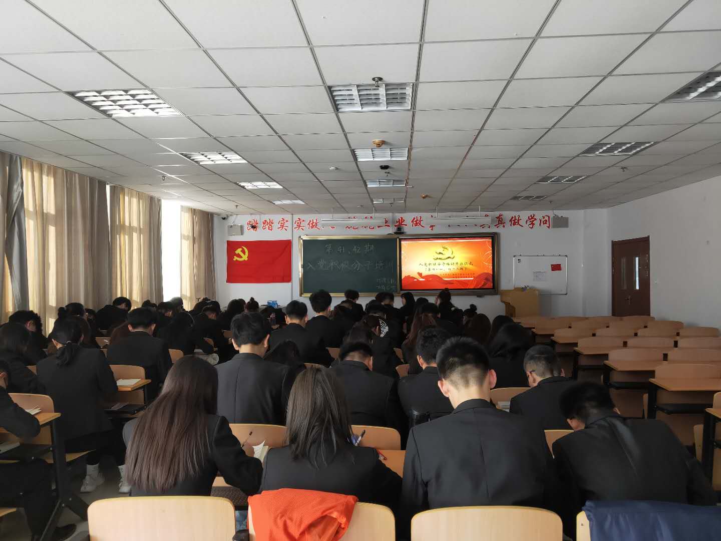 同学们表示,对此次珍贵的党校培训机会表示由衷的感谢,并代表大家承诺努力学习党课知识,严格要求自己,以最好的状态面对每一次的课程学习。学院领导对这次党校培训人员的态度表示充分肯定,并表示看到了大家学习党校知识的决心和毅力。
