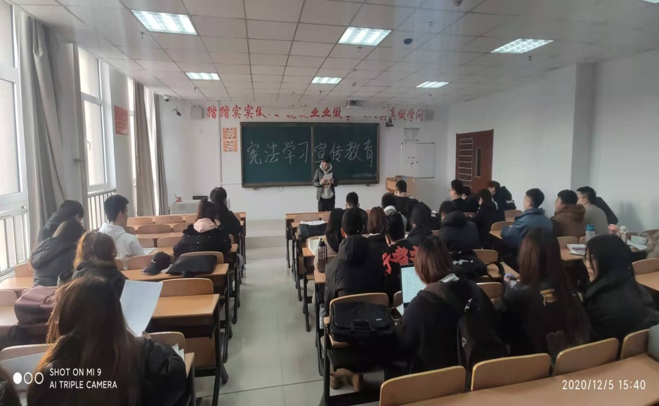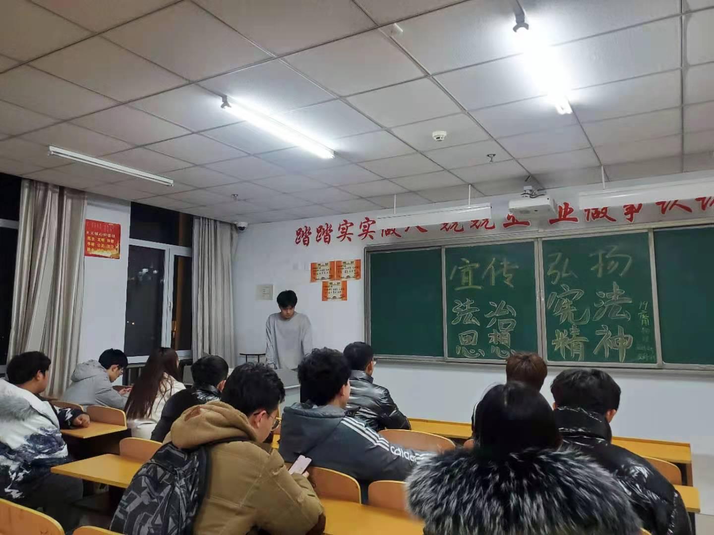 按照自治区教育厅和学校党委2020年宪法宣传周工作安排,学院全体教职工于12月3日下午3点在物理学院办公室开展“深入学习习近平法治思想,大力弘扬宪法精神”为主题的学习活动,全体教师认真学习了《习近平法治思想》、《习近平关于宪法的的十句重要论述》和《习近平关于宪法和修法的重要论述》;同时,学院各班级在12月4日开展了形式多样的“宪法活动周”宣传主题班会,并举行宪法晨读活动。