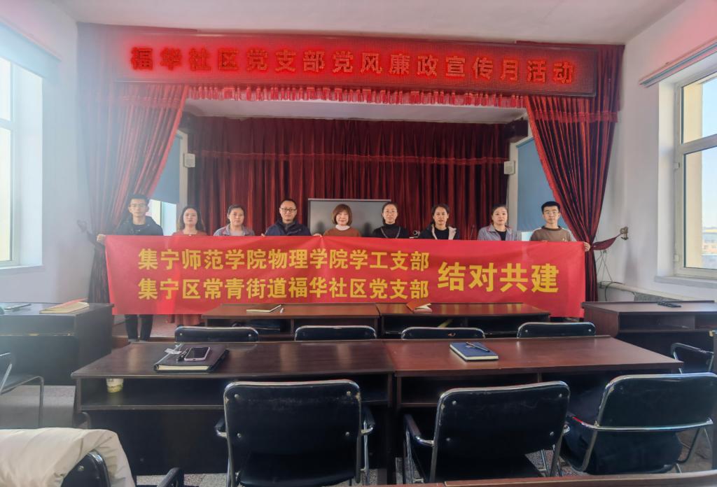 为深入学习贯彻习近平新时代中国特色社会主义思想,进一步落实全面从严治党要求,建设忠诚、干净、担当的干部队伍。12月9日,集宁师范物理学院学工支部与集宁区常青街道福华社区党支部结对共建在富华社区开展“12·9”党风廉政国际反腐败日宣传主题教育活动。